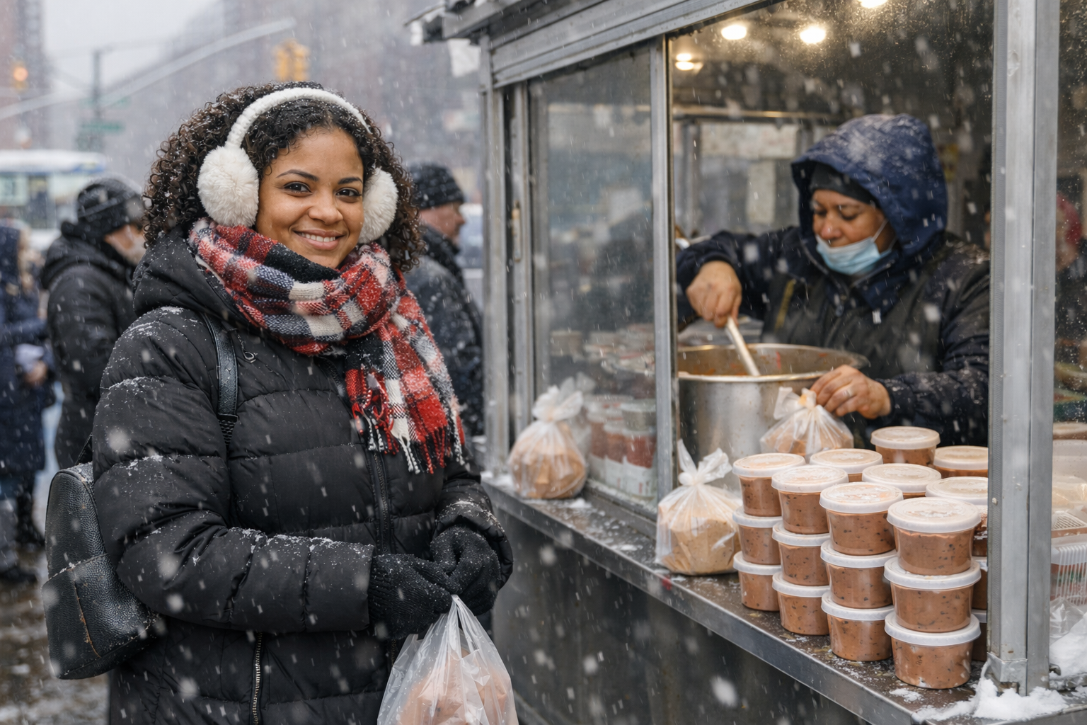 Bien abrigada, con guantes, gorro, botas, bufanda y orejeras, Brenda burló los 0° C del domingo y la amenaza de nevada, para hacer fila junto a decenas de personas que esperan con paciencia uno de los postres más dominicanos: habichuelas con dulce.